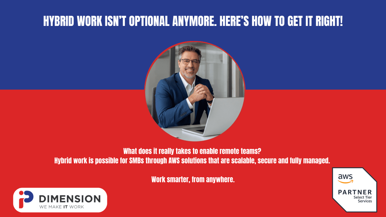 If your business is embracing flexible work, don’t leave your IT infrastructure behind. With AWS and IP Dimension, you gain a future-ready foundation for long-term success, wherever your team works from.